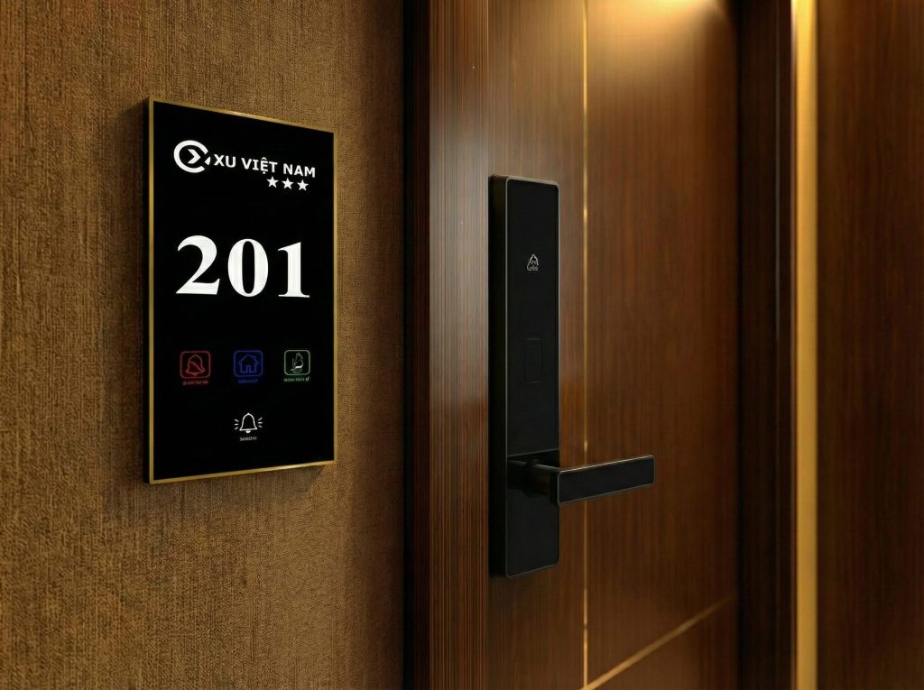 👉 Một khách sạn sử dụng biển số phòng điện tử kết hợp khóa thẻ từ sẽ: