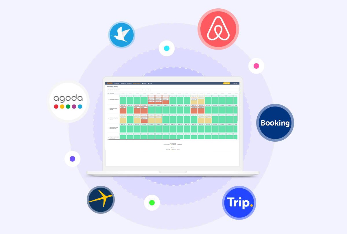Tích hợp trực tiếp với Agoda, Booking, Traveloka, Mytour, Luxstay, v.v.