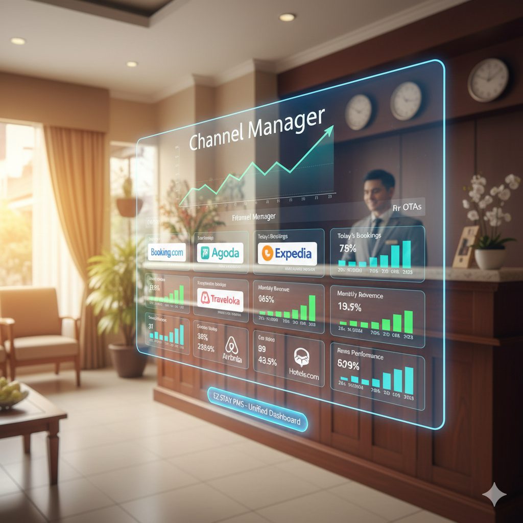 PMS tích hợp quản lý kênh phân phối Channel Manager đồng bộ với: Booking, Agoda, Traveloka, Airbnb