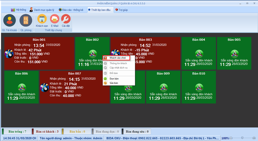 🔹 Tính năng của Phần mềm quản lý BIDA OXU: